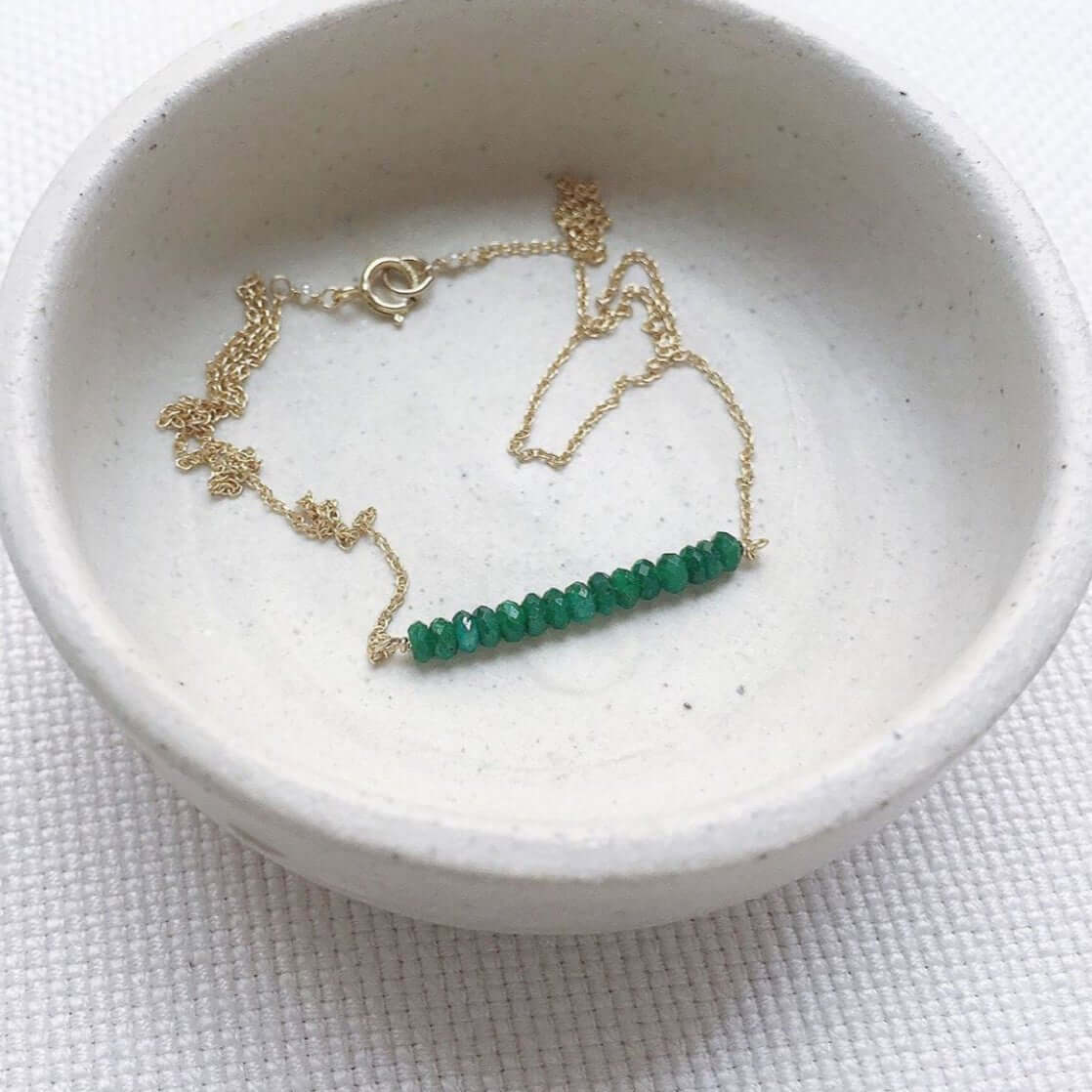 A delicate row of tiny gemstone beads are gathered on a dainty 14k solid gold chain. Subtle and simple, this beautiful semi-precious stone necklace is perfect by itself or for layering with other necklaces.
