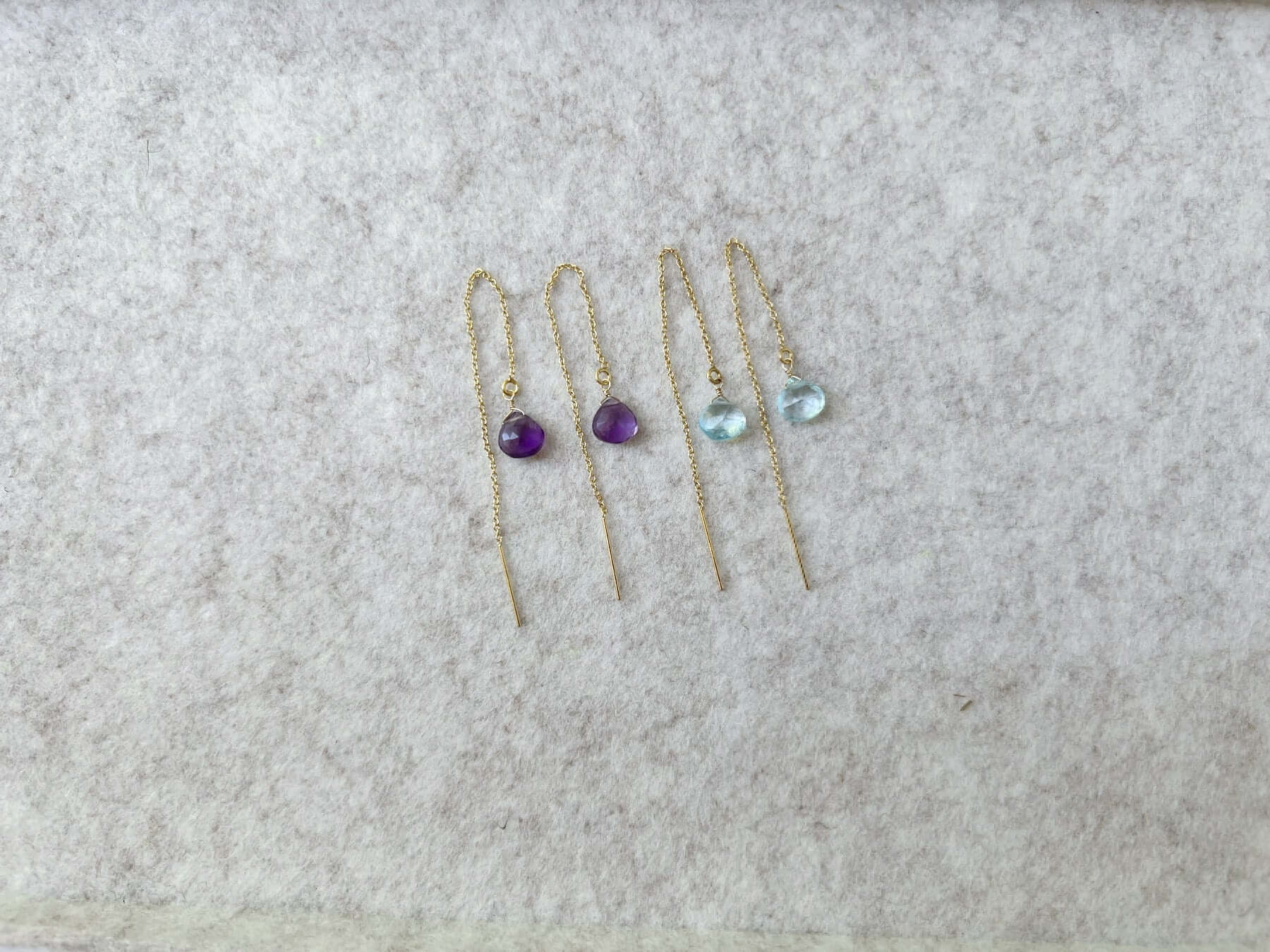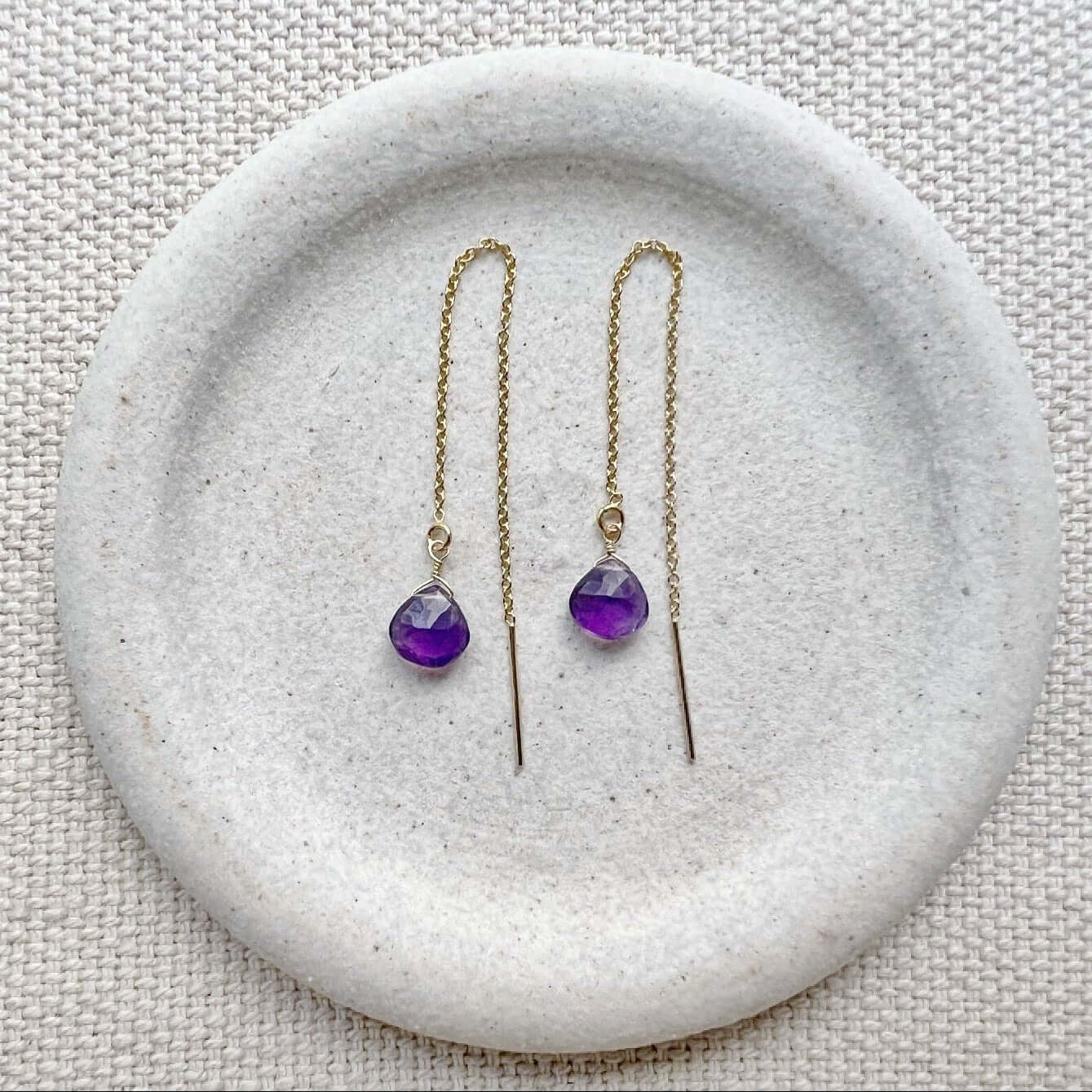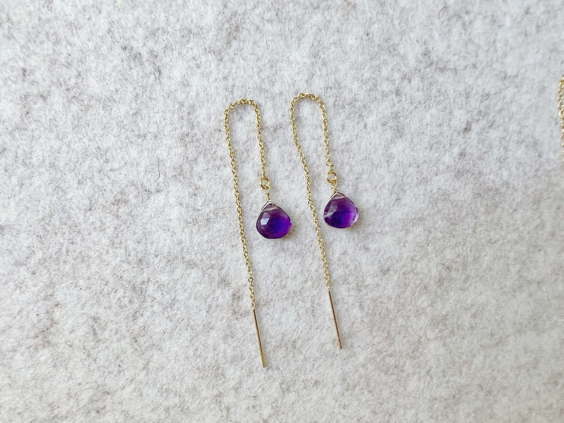 Delicate, modern, and effortlessly elegant, our Amethyst Threader Earrings feature genuine purple amethyst gemstones suspended on fine threader chains for a lightweight, minimalist look.