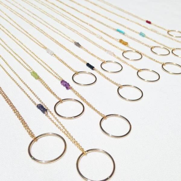 A delicate open circle pendant is accented with genuine clear quartz beads, adding soft sparkle and dimension without overwhelming the design. The minimalist silhouette makes it easy to wear on its own or layer with other necklaces.
