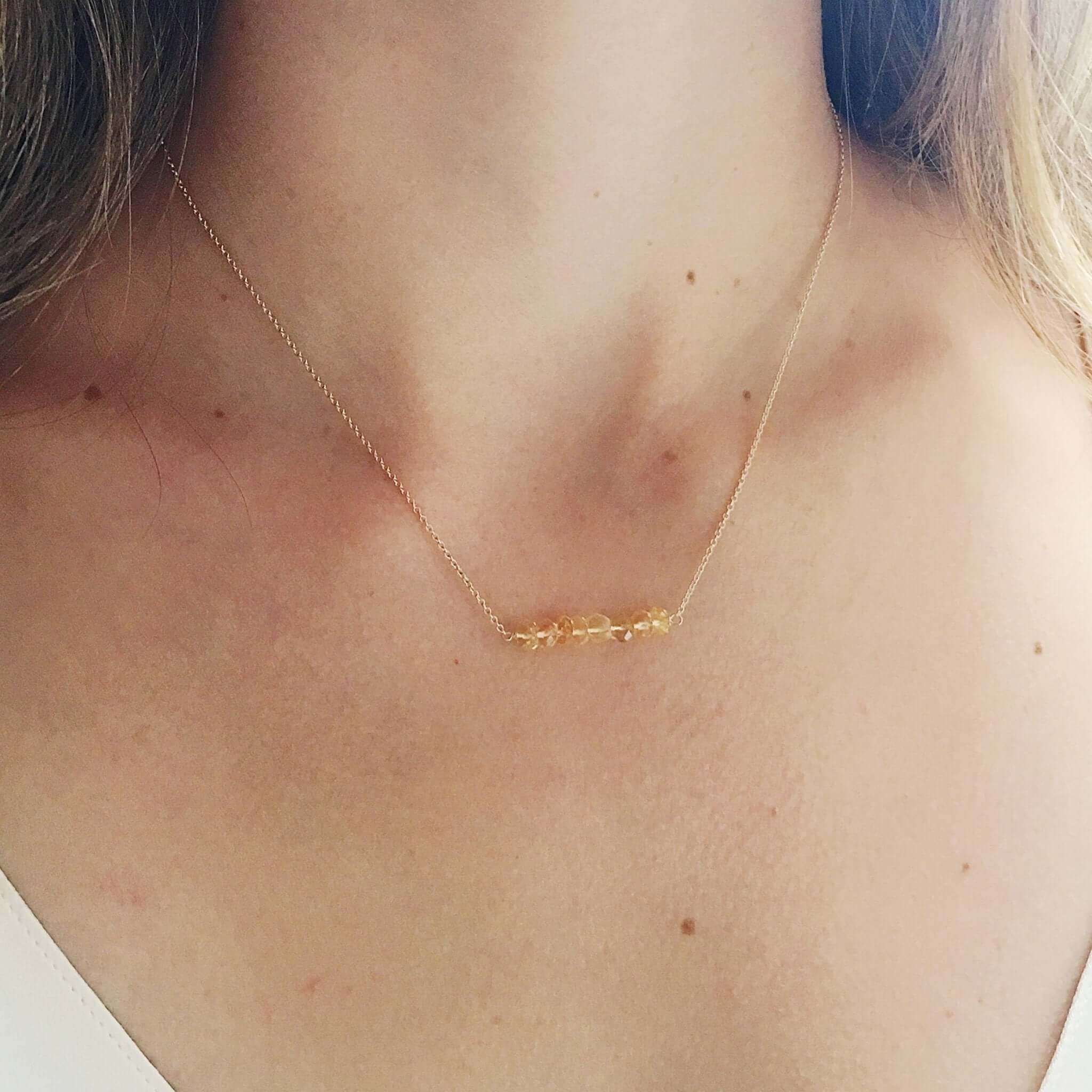 This Citrine Beaded Necklace features natural citrine gemstones arranged in a delicate, minimalist design that adds a warm golden glow to any look. Lightweight and effortless, it’s perfect for everyday wear or layering with your favorite necklaces.