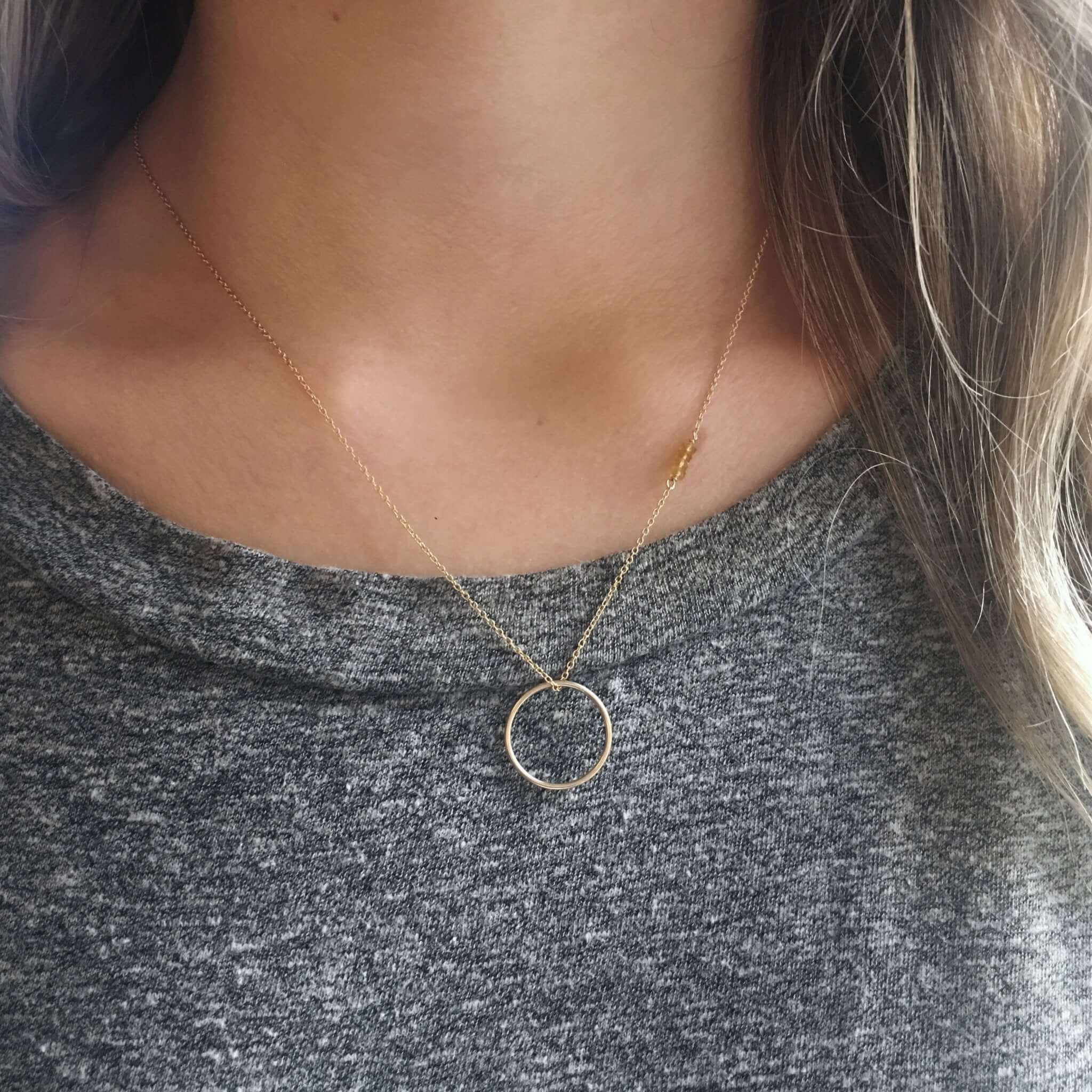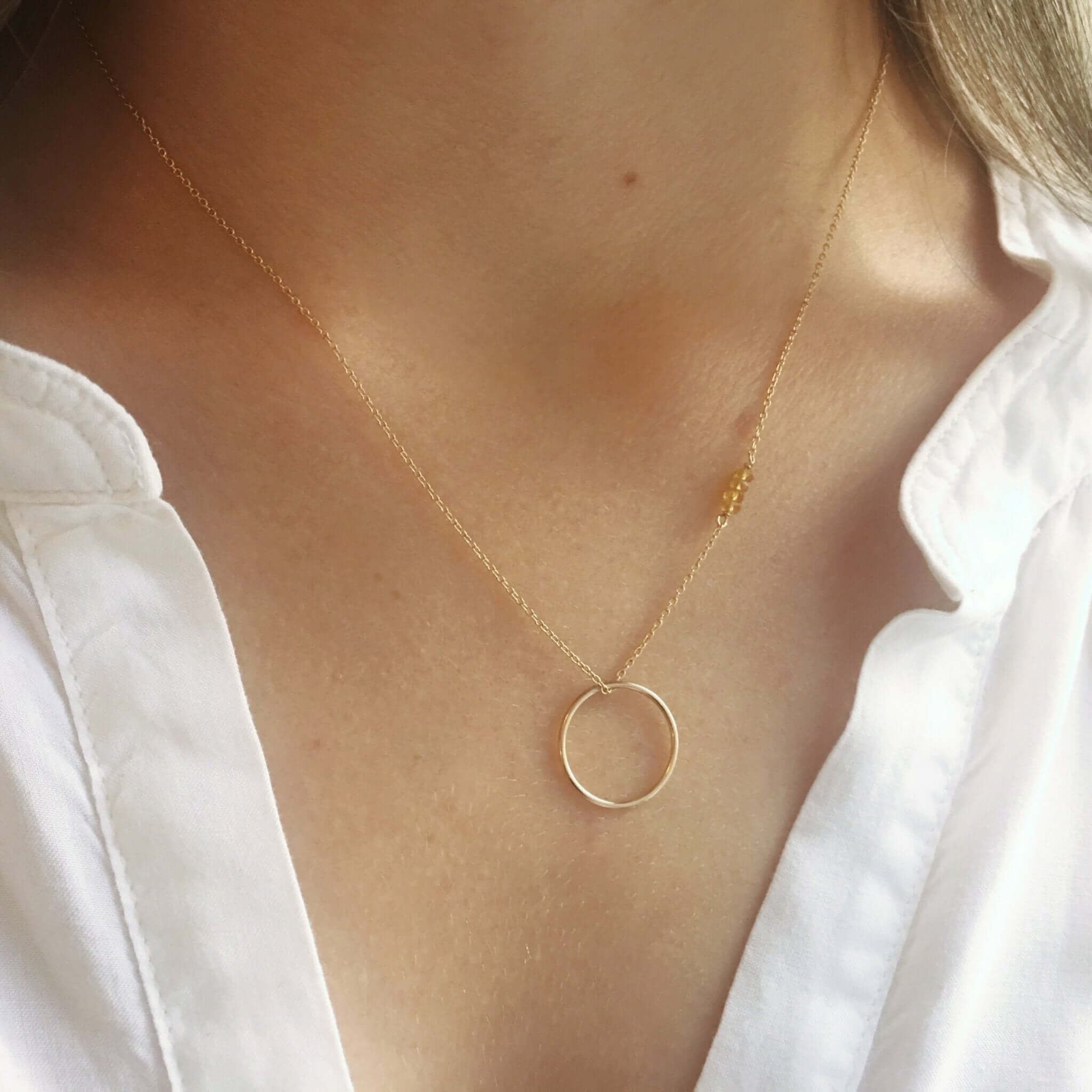 A timeless minimalist staple, this citrine circle necklace features a delicate open circle accented with a natural citrine gemstone. Simple, elegant, and endlessly wearable, it’s designed to complement any outfit from day to night.