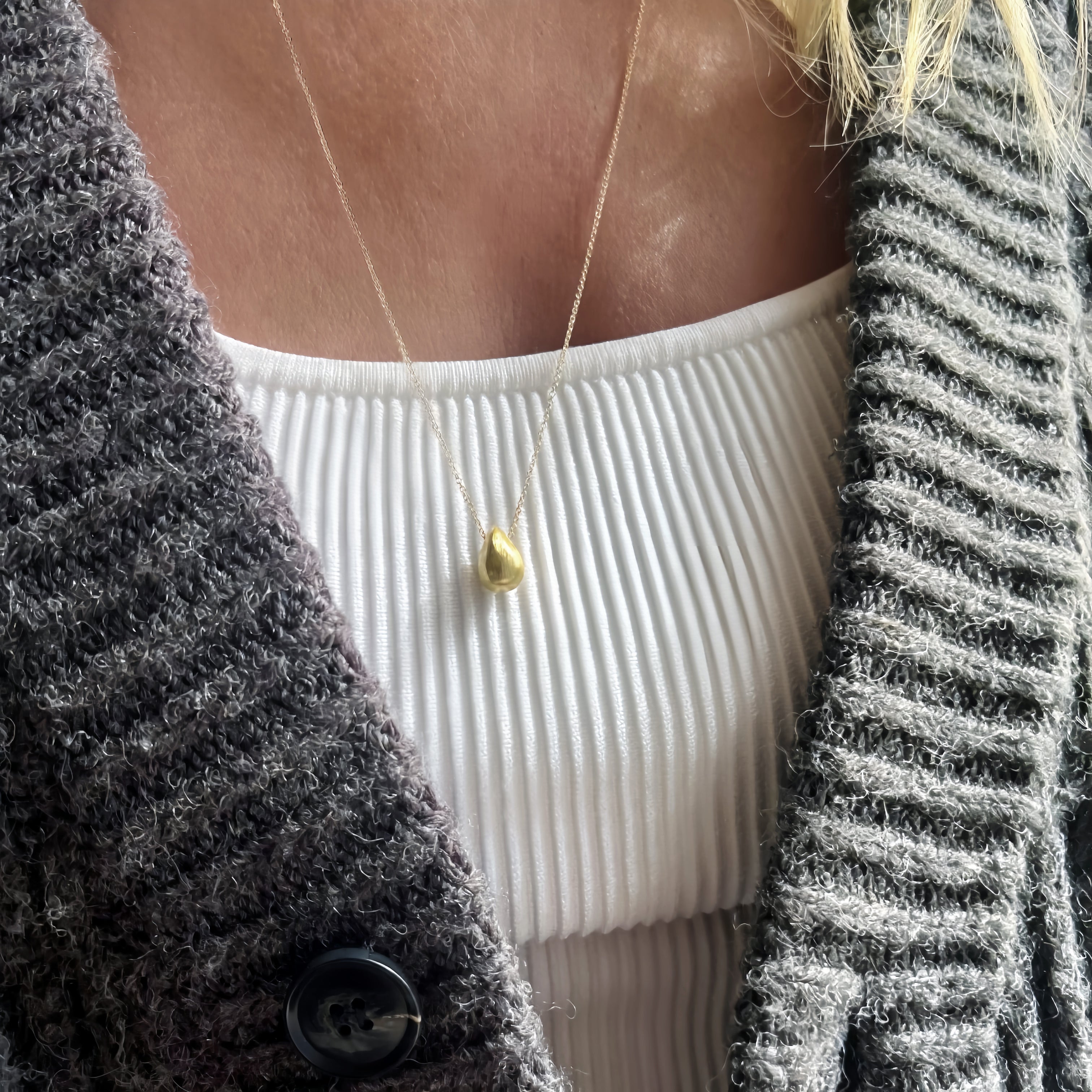 Chic, minimal, and endlessly versatile—this long gold teardrop pendant necklace adds a touch of effortless elegance to any look. Featuring a sleek gold teardrop charm suspended from a delicate chain, this piece is perfect worn solo or layered with your favorite dainty necklaces.