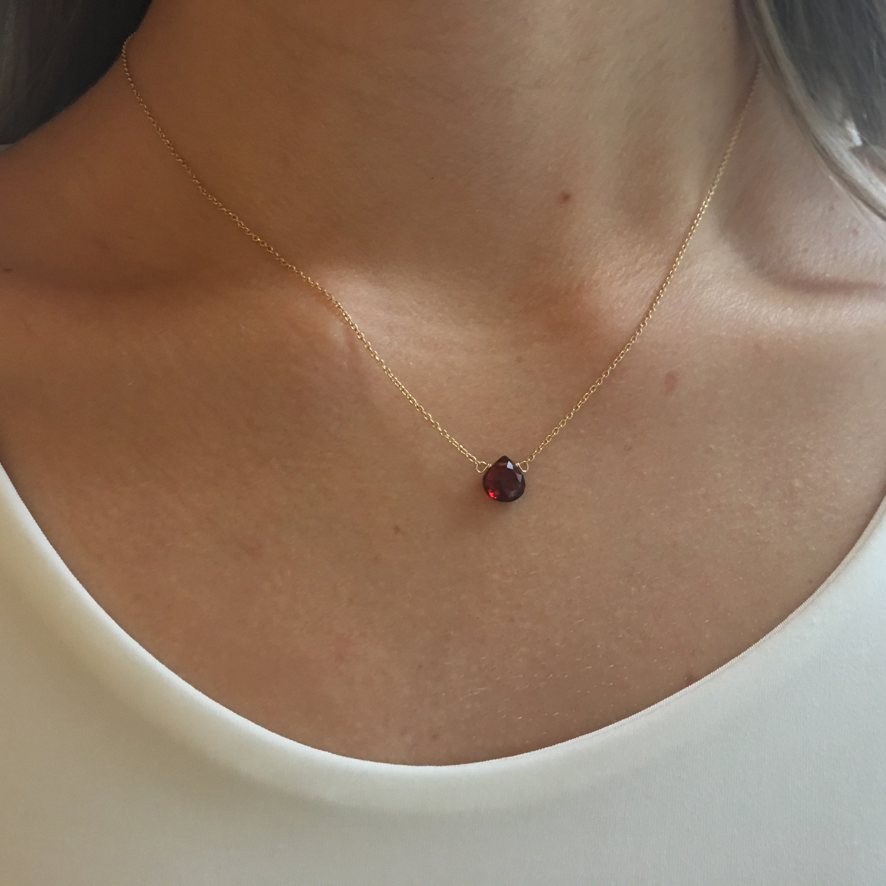 A deep, glowing pop of red — our Garnet Birthstone Necklace features a genuine faceted garnet drop that rests delicately on a fine, minimalist chain. Handcrafted in our studio, this timeless piece celebrates the January birthstone, known for symbolizing protection, passion, and strength.