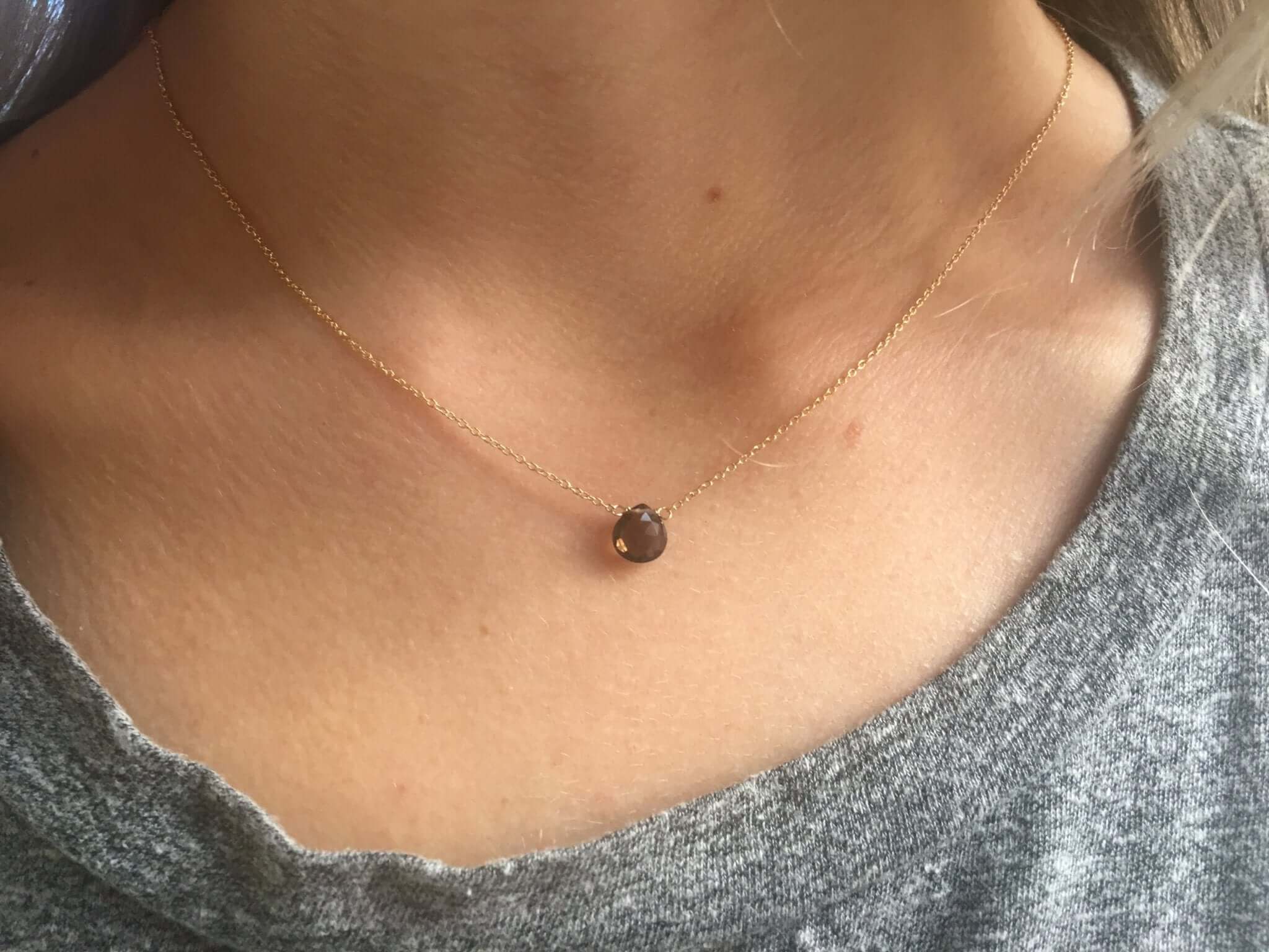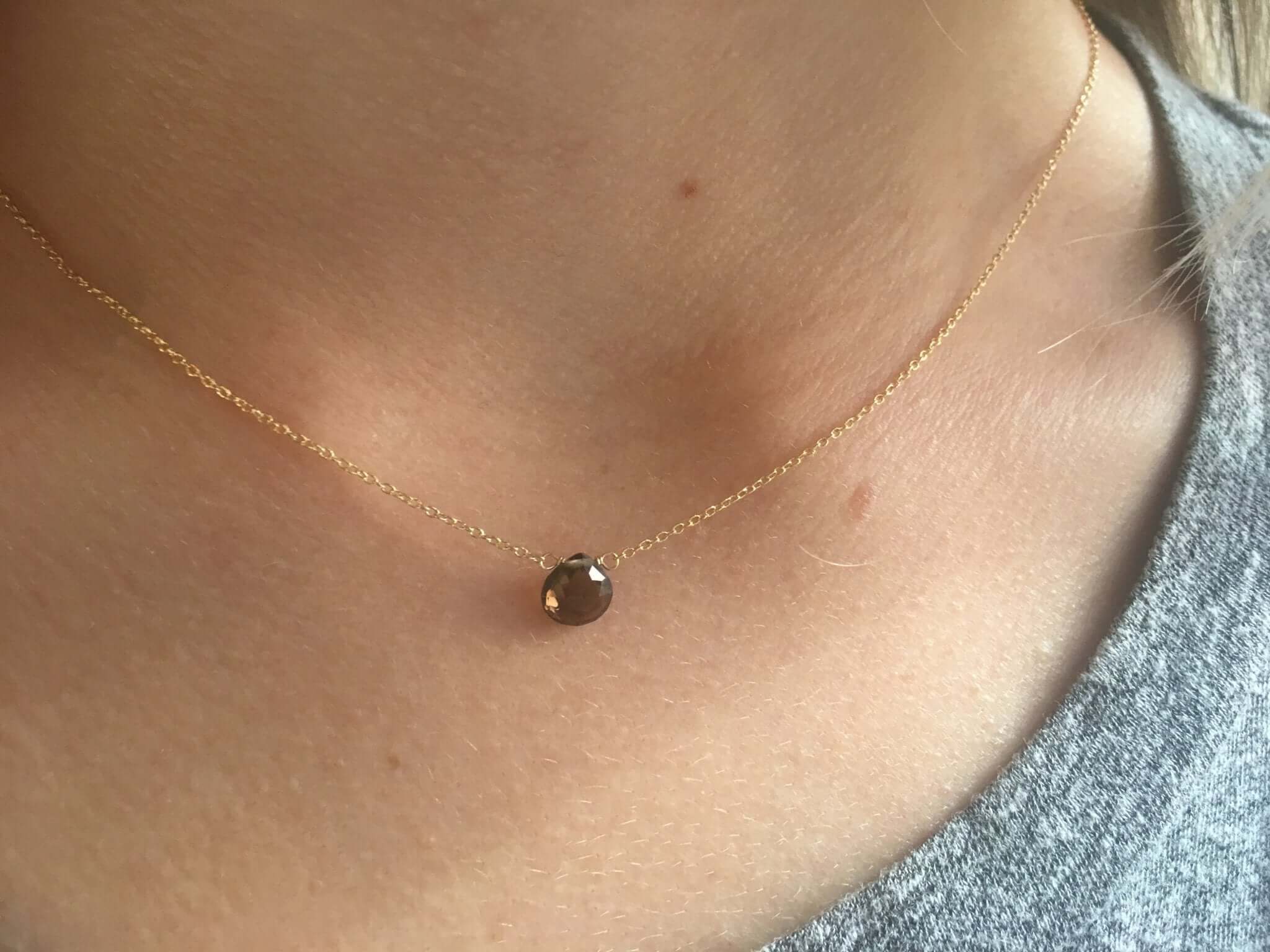This dainty smoky quartz necklace features a genuine smoky quartz gemstone suspended from a delicate chain for a subtle, earthy look. The warm, translucent tones of smoky quartz make it an easy everyday necklace that works beautifully on its own or layered with other pieces.