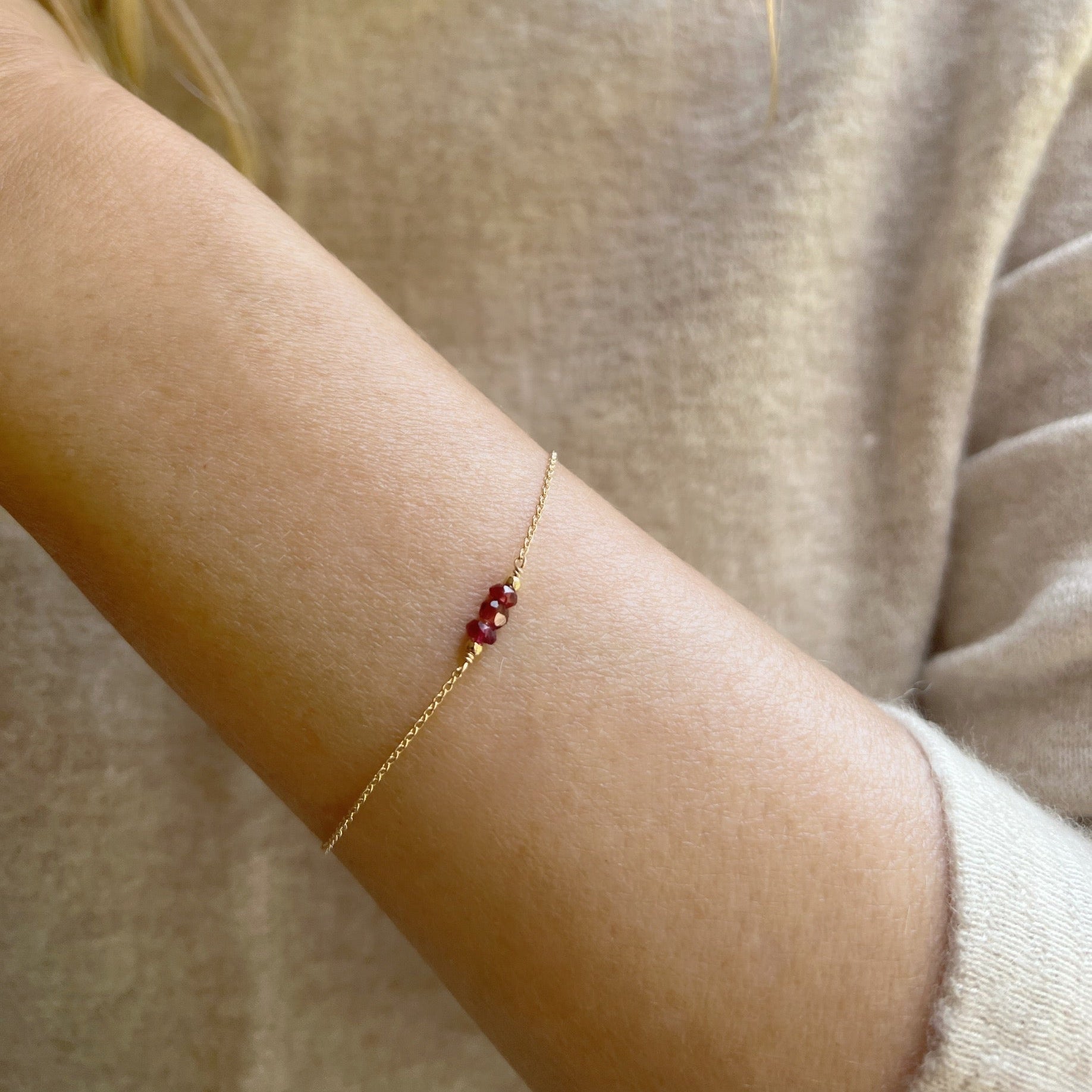 Dainty Garnet Bracelet – Handmade January Birthstone