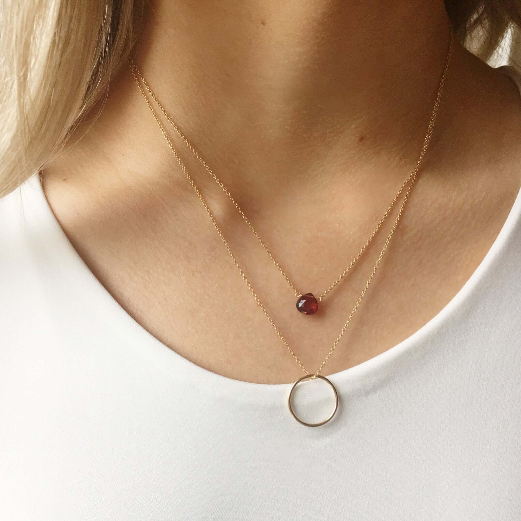 Garnet & Circle Layered Necklace | January Birthstone Jewelry