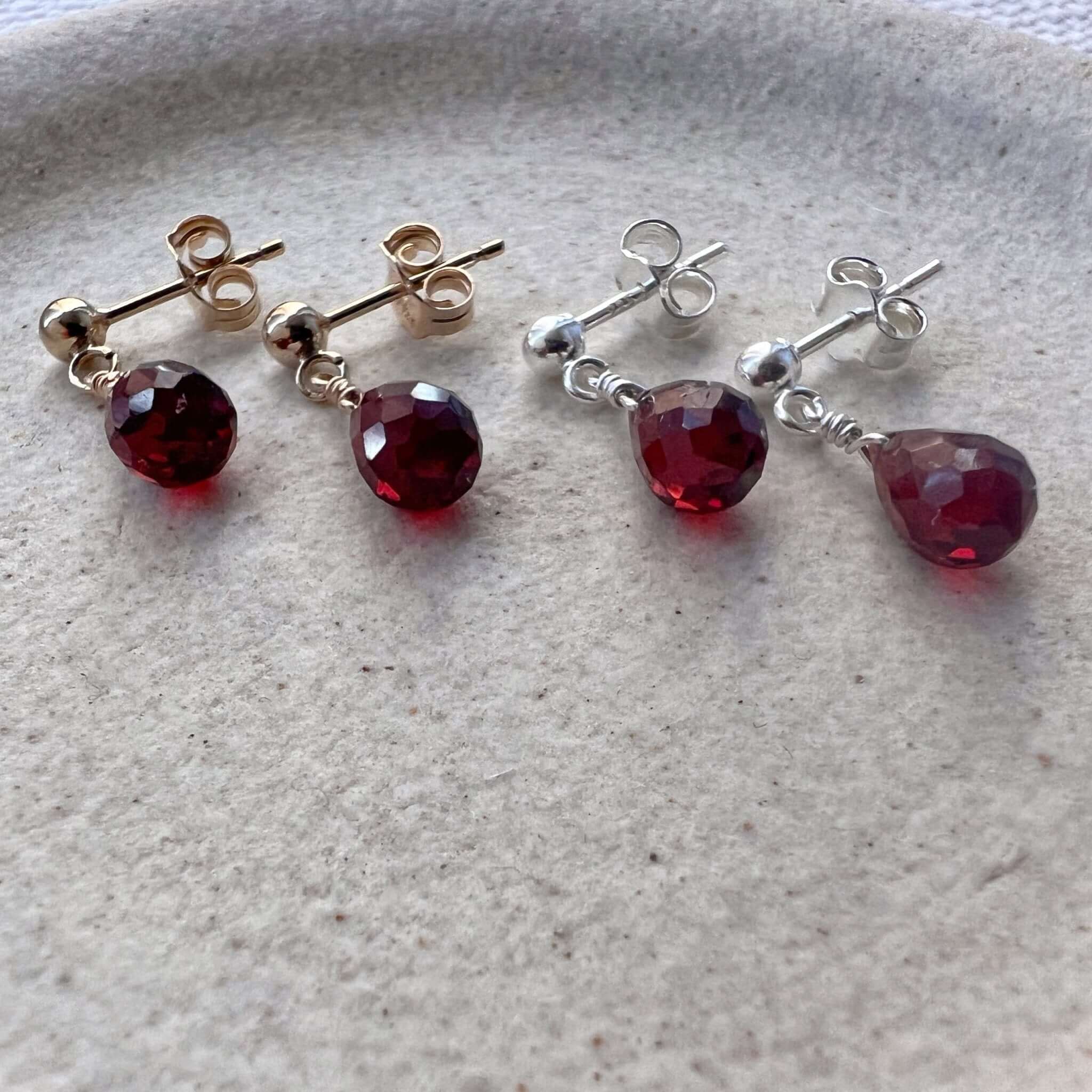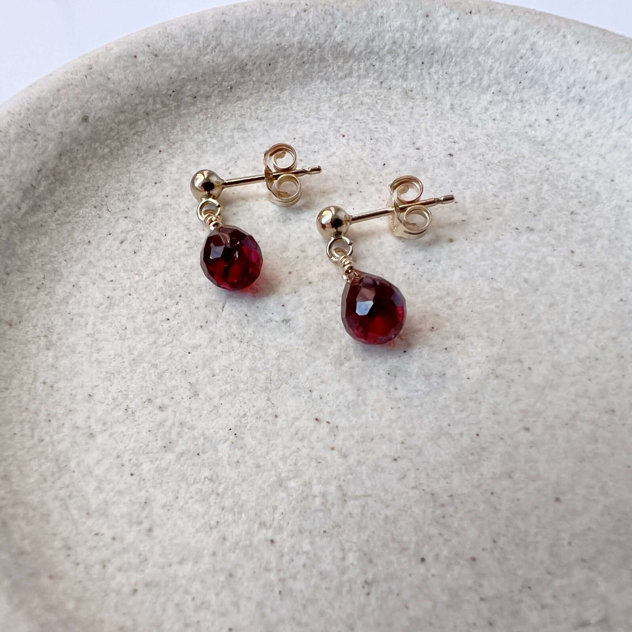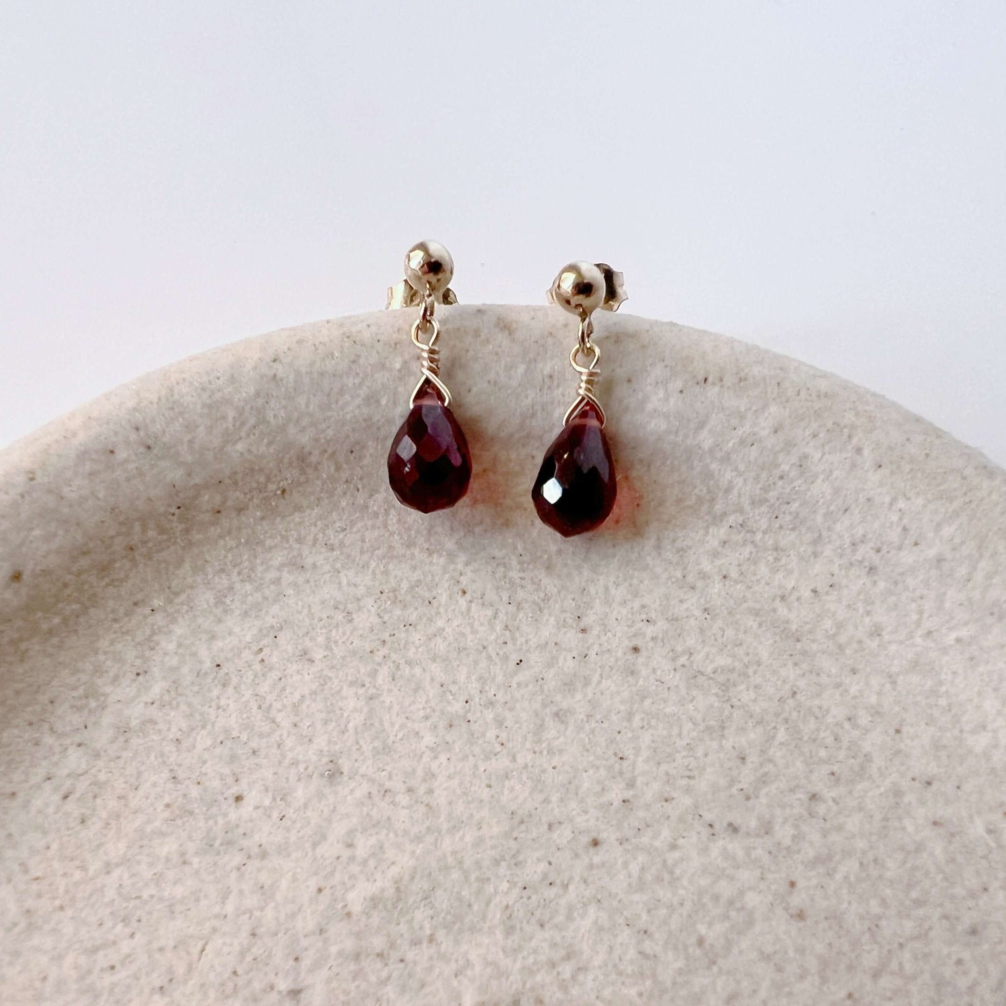 Our dainty garnet stud earrings are lightweight and minimalist - the perfect everyday earrings. Garnet is the January birthstone.