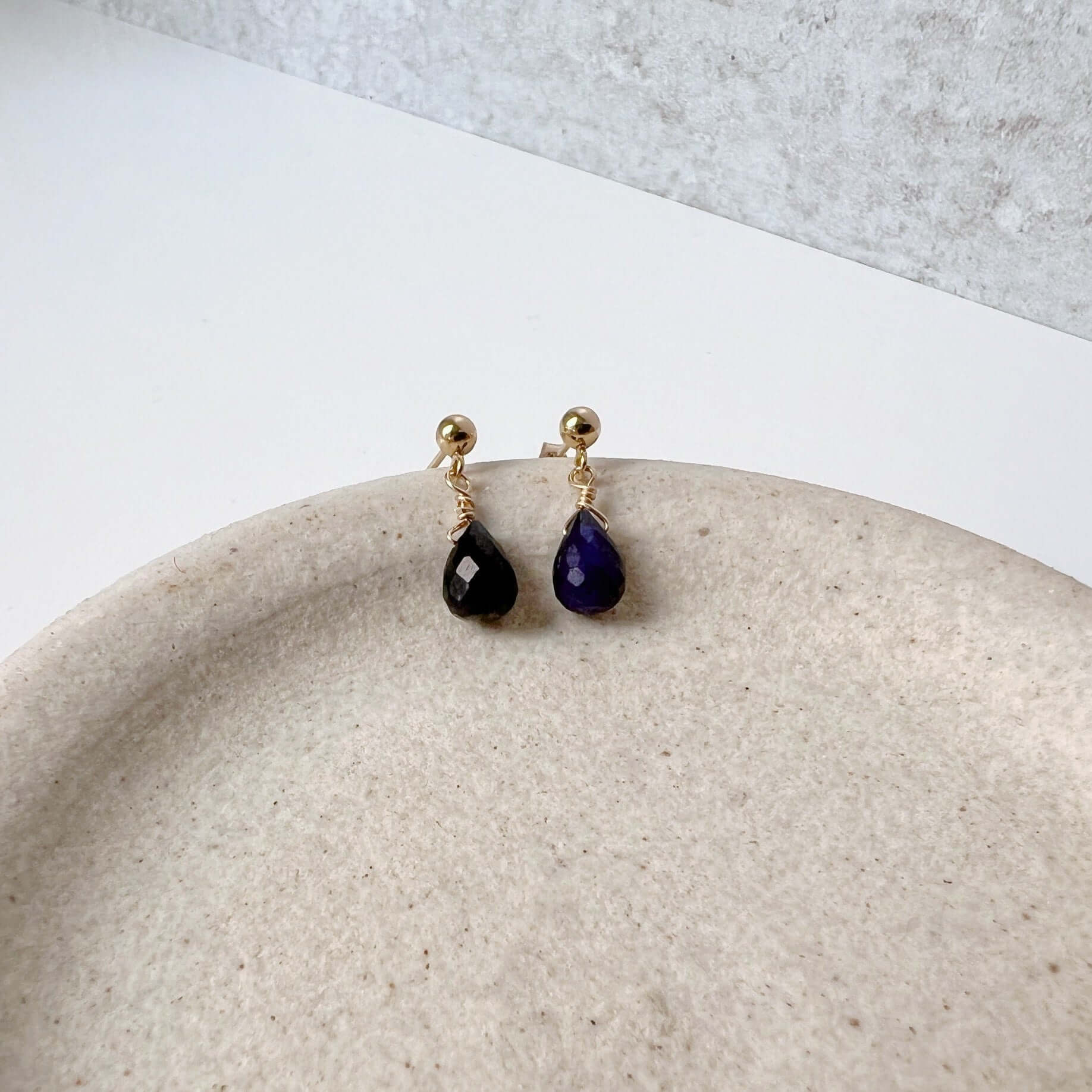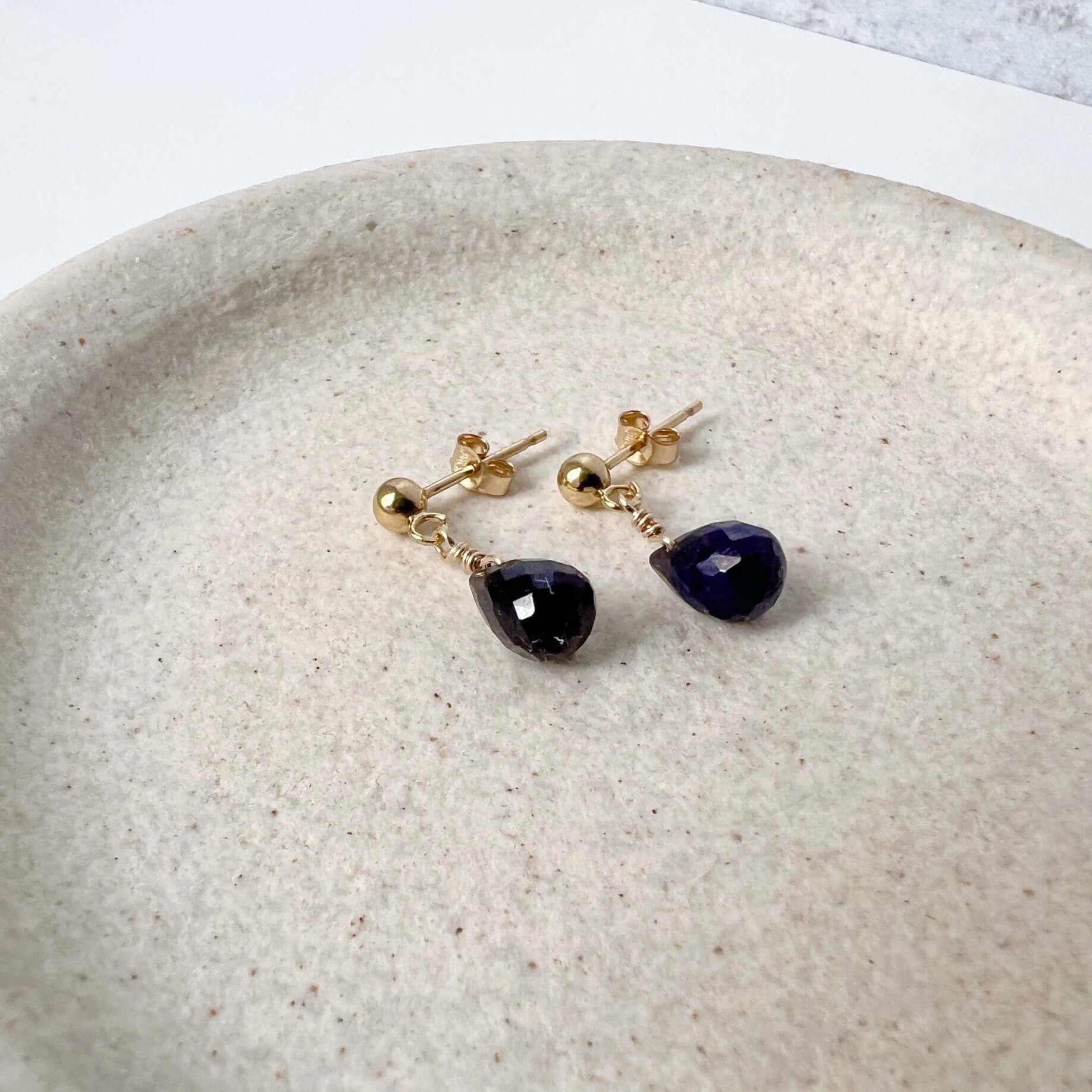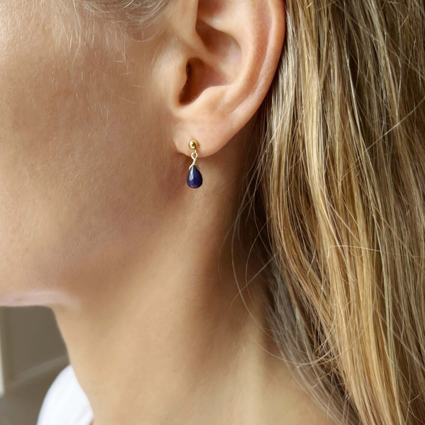 Our delicate sapphire stud earrings are lightweight and minimalist, making them the perfect everyday accessory. Genuine teardrop sapphires embellish these dainty stud earrings. Sapphire is the birthstone for September.