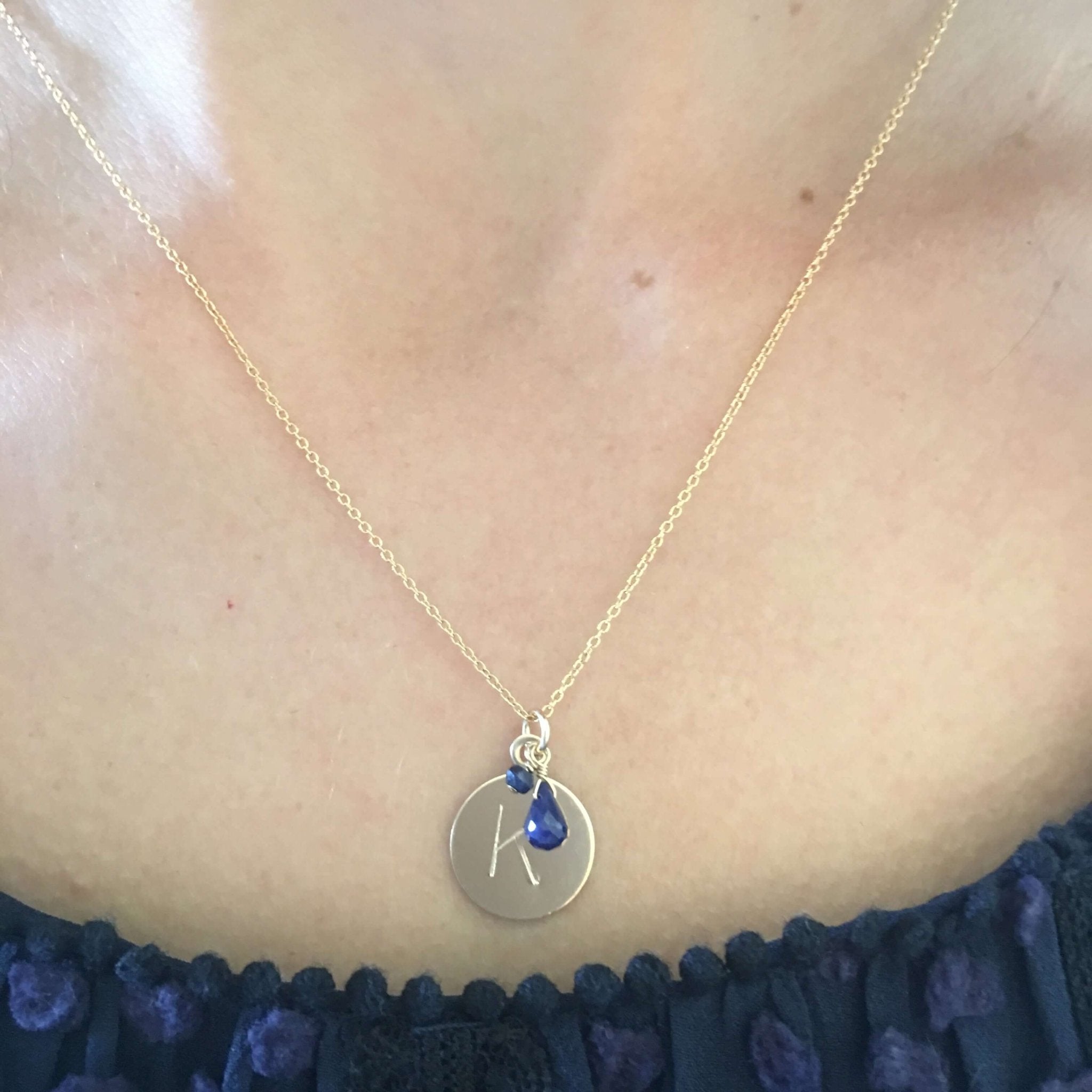 Initial Disc Sapphire Necklace