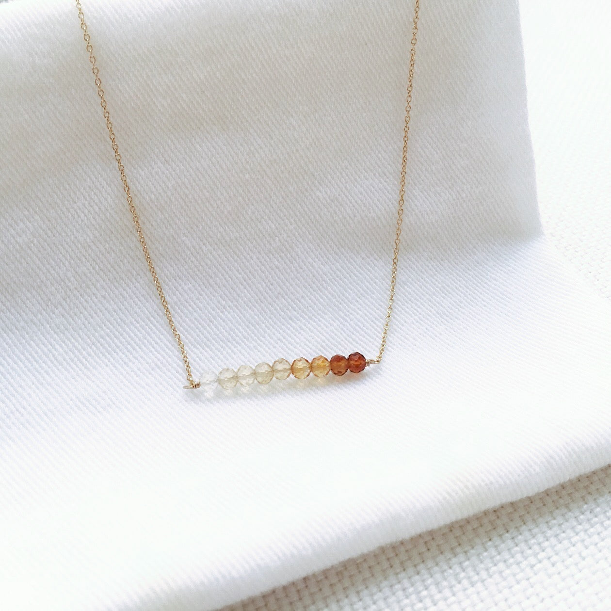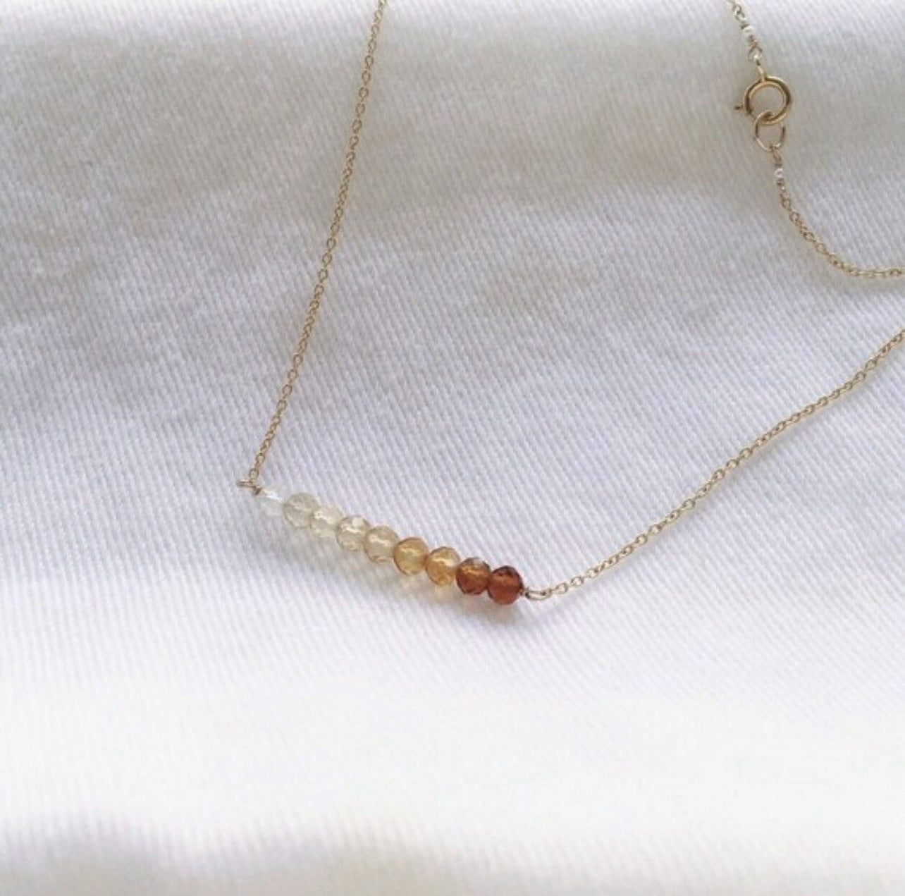 Add a touch of golden radiance with our Ombré Citrine Necklace, featuring a delicate gradient of genuine citrine gemstones. Each stone transitions seamlessly from deep amber to pale gold, symbolizing warmth, positivity, and abundance — the perfect reflection of November’s birthstone.
