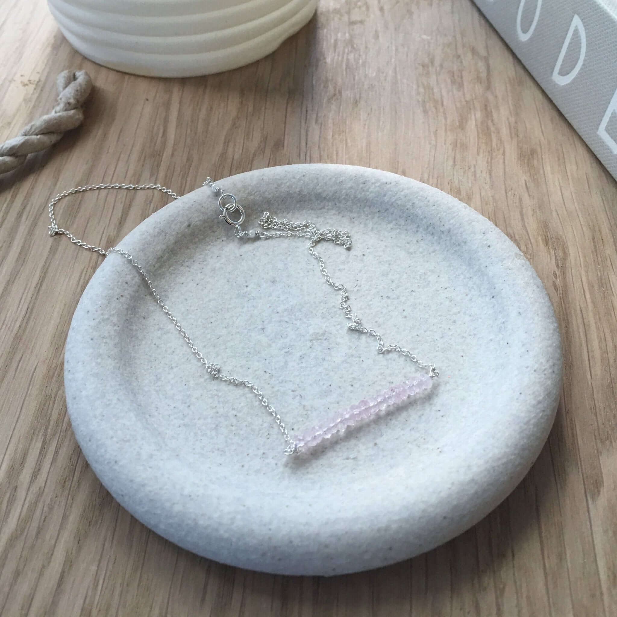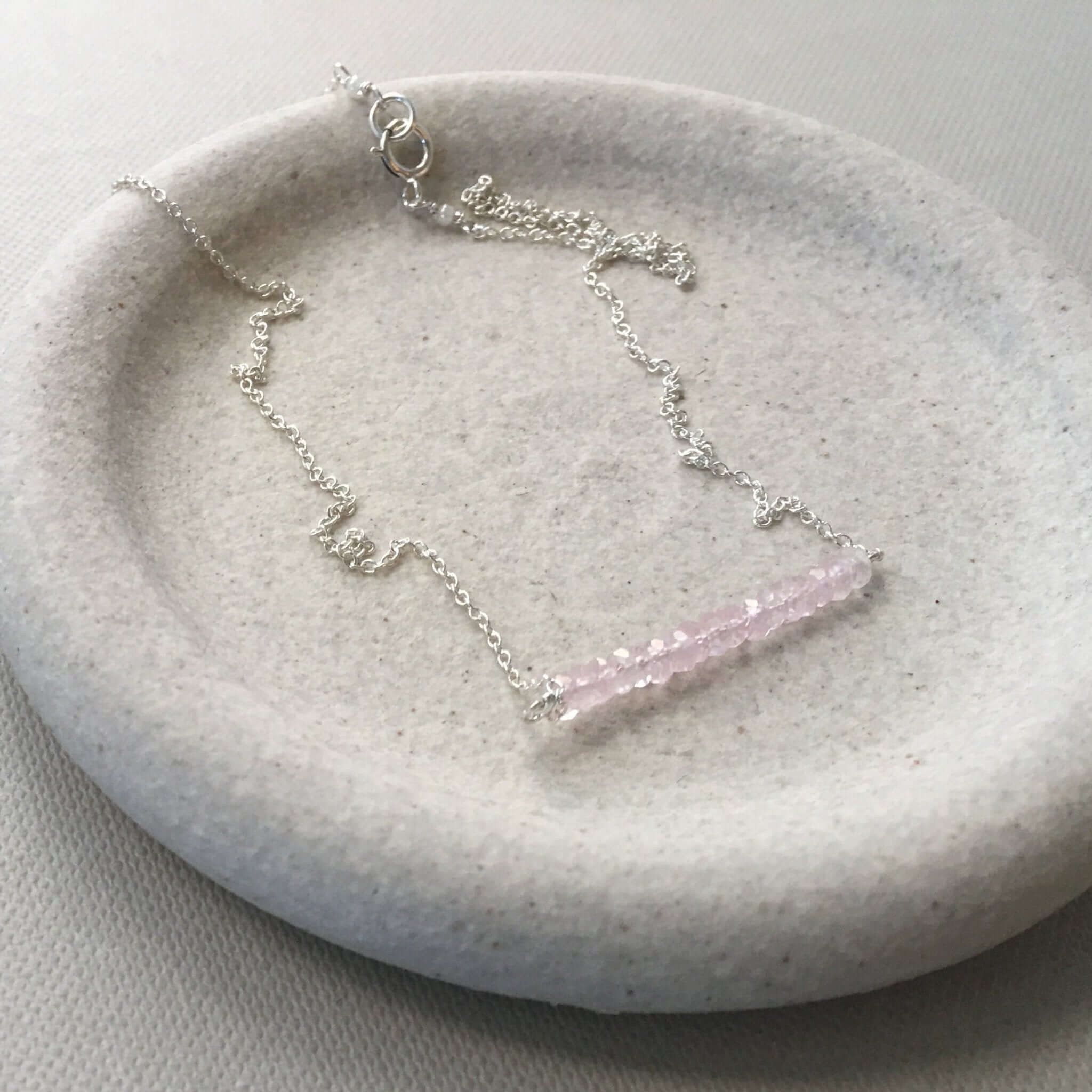 Rose Quartz Beaded Bar Necklace – Minimalist Pink Gemstone Jewelry