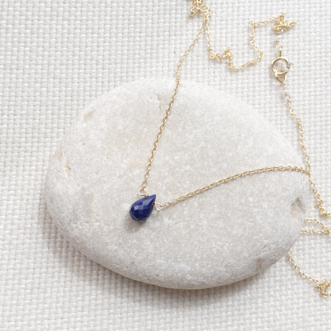 Handcrafted with care, the teardrop sapphire is wire-wrapped and suspended on a delicate chain in your choice of 14k gold-filled, rose gold-filled, or sterling silver. Its minimalist design makes it ideal for everyday wear or layering with your favorite necklaces.
