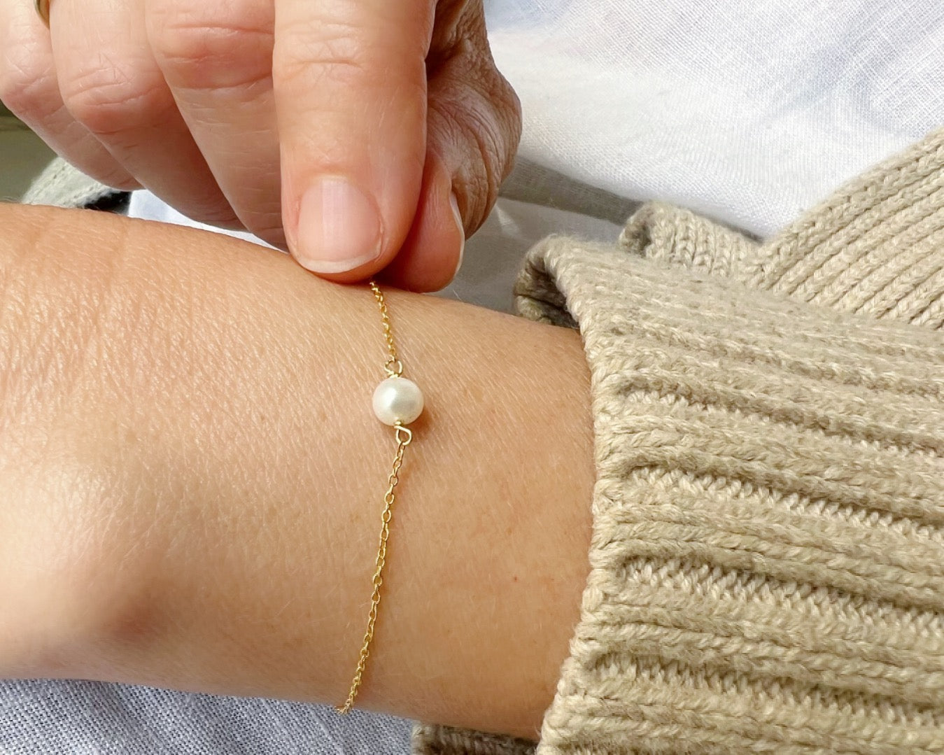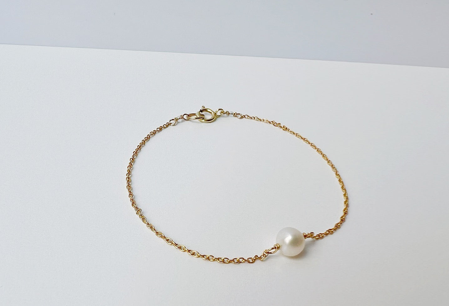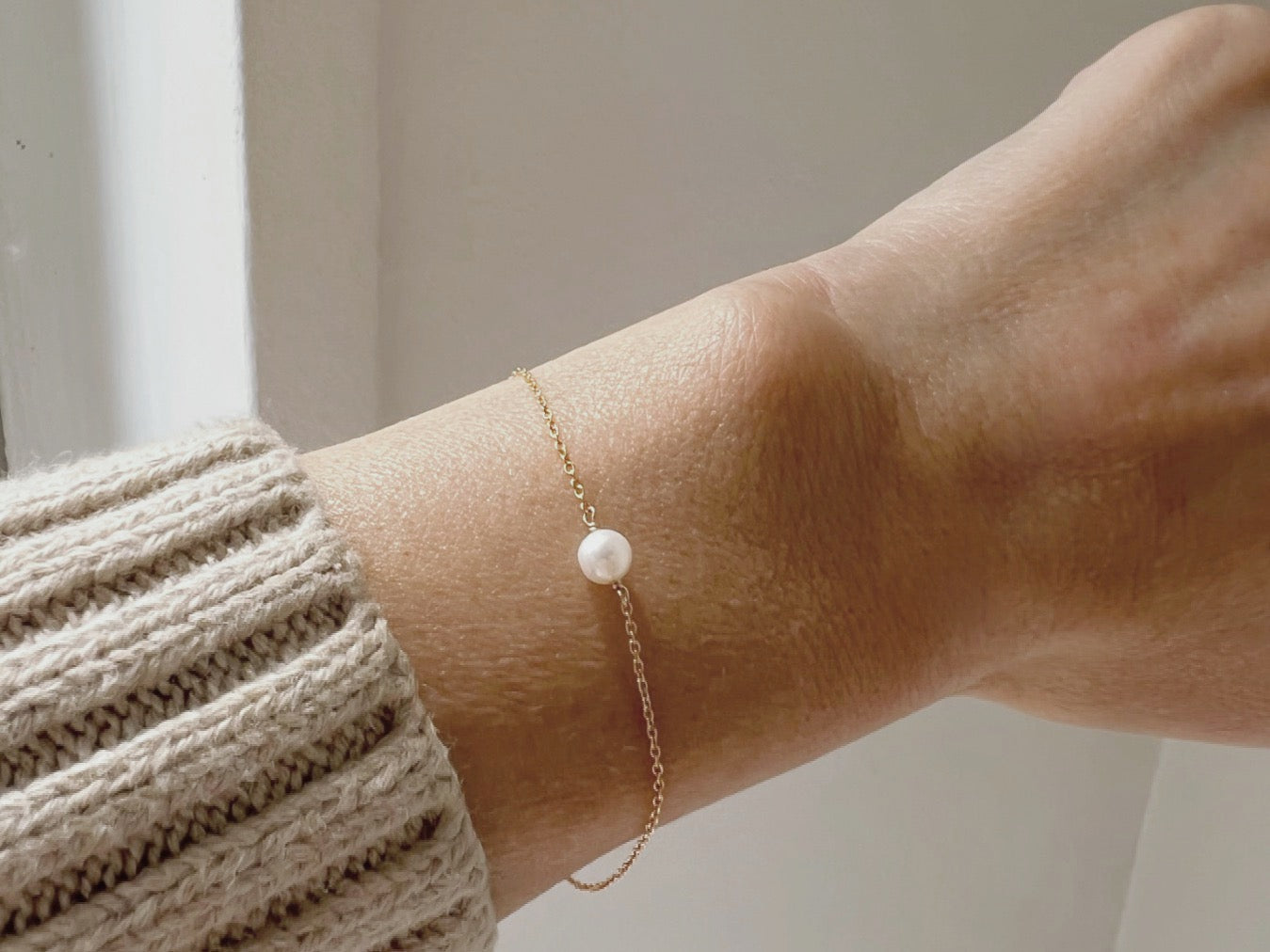 A timeless single pearl bracelet designed for everyday elegance. Featuring a luminous freshwater pearl centered on a delicate chain, this piece adds a soft, refined touch to any look.